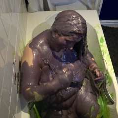 Kimmokay chilled in a hot tub full of clay with megapies