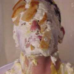 StagedStooge got a custard-filled balloon busted over his head by michiganpie1